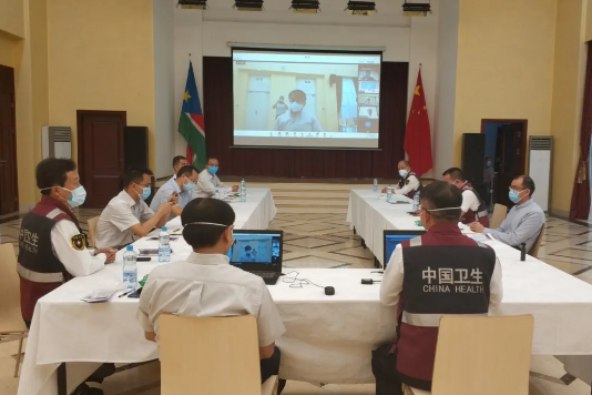 当地时间8月23日上午,中国政府抗疫医疗专家组在南苏丹首都朱巴举办中国机构企业疫情联防联控会议,为在南中资企业、援南医疗队、援外项目组、中国籍国际职员等介绍新冠肺炎疫情防控知识。