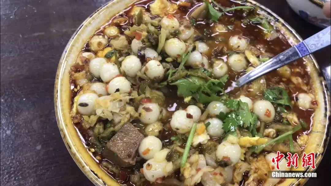 在四川成都还有这么一家牛羊杂粉店,最受顾客欢迎的是居然是老板秘制的麻辣牛肉汤圆!这款被老板自己定位为“暗黑风”系列的麻辣牛肉汤圆是用现炒蛋花,加上熬制的牛骨汤和麻辣牛肉臊子搭配的小汤圆。顾客食用时,还可以加一些酸菜、香菜等调料,再浇上辣椒油和辣椒酱。老板表示,醪糟汤圆、红糖汤圆、肉汤圆吃够了,就尝尝特色川味汤圆。