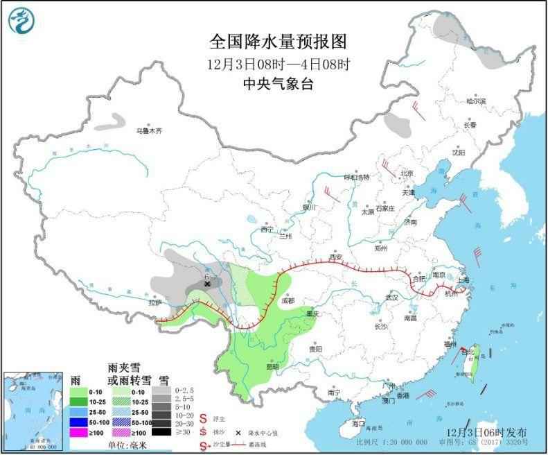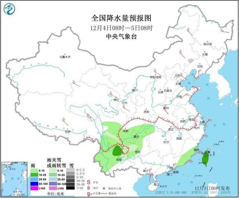 明天,东南沿海降水开始发展。预计内蒙古东南部、川西高原南部、四川南部、贵州中西部、云南东北部等地的部分地区有小雪或雨夹雪。四川南部、重庆、贵州中部、云南中西部、台湾岛等地的部分地区有小到中雨,台湾岛东北部局地有大雨。