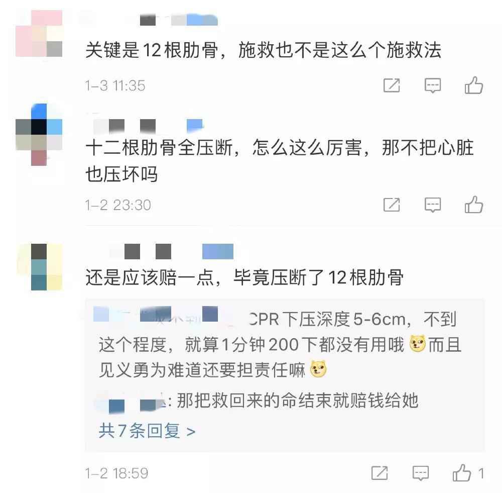 但也有网友质疑,施救过程中导致12根肋骨断裂,是否存在不当?